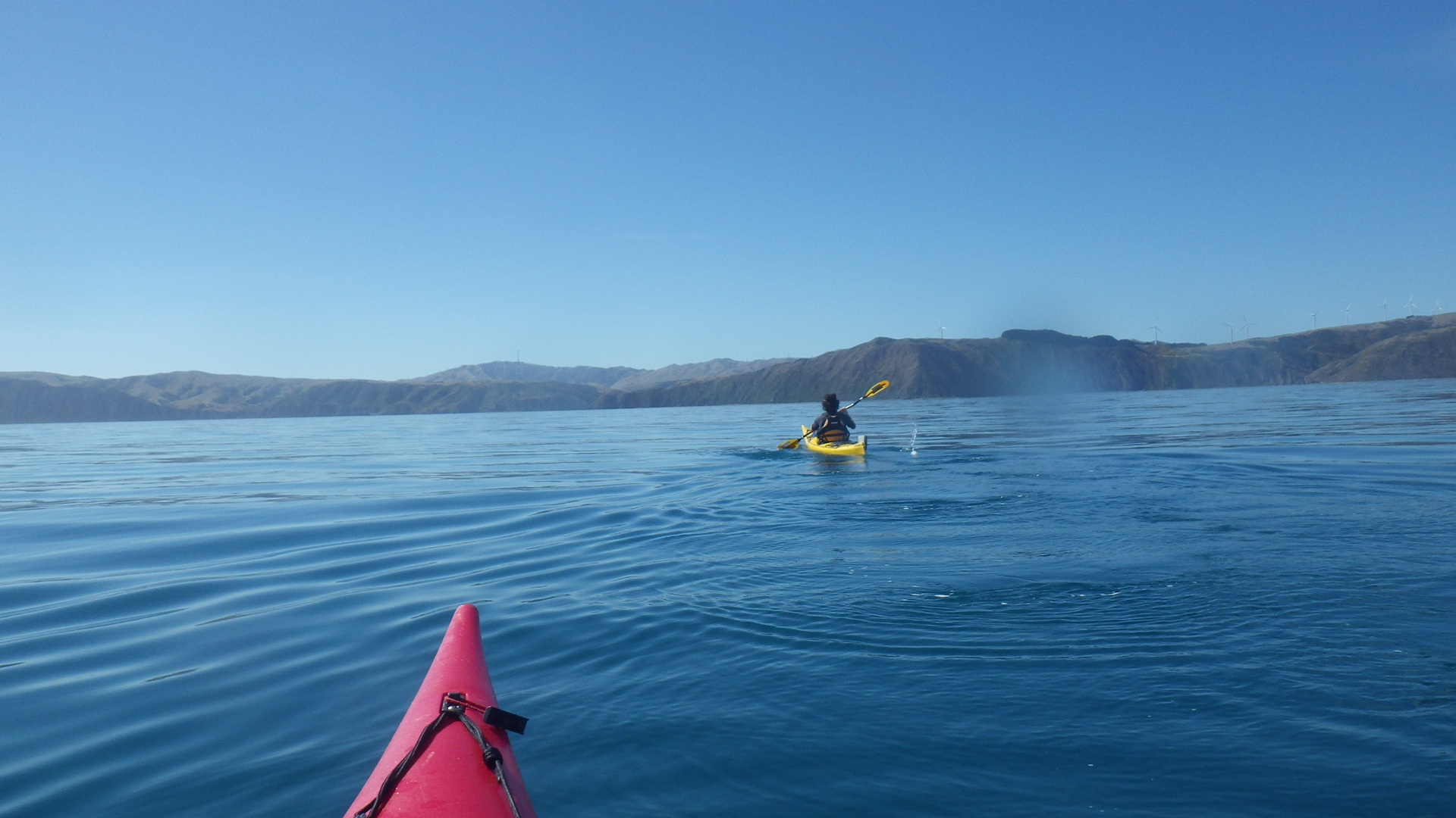 There was a light southerly ground swell rolling underneath us and our boats (as forecast) and this in fact was pushing us to towards the north island. My worst fear about this whole trip besides Tori Channel was being swept out to sea. However we are all safe kayakers and had waited for this weather window. Each had a emergency flare on our boat and i had the UHF Radio if we needed a mayday call to go out.
