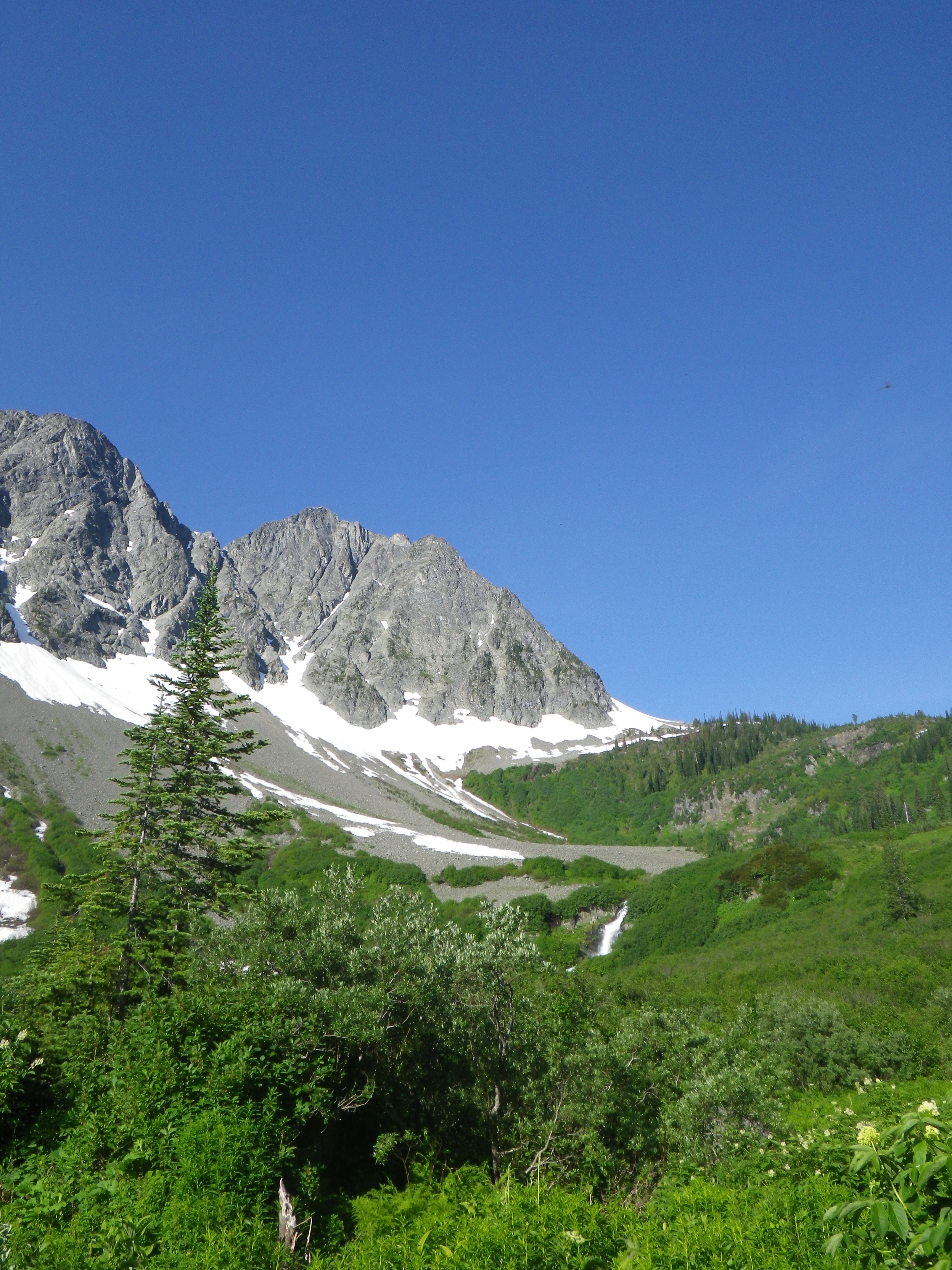 We crossed a log over a raging river (the 1st of probably 100’s in this week) this region had experienced about 150% of its normal snow pack this winter and the snow melt was still in full swing.