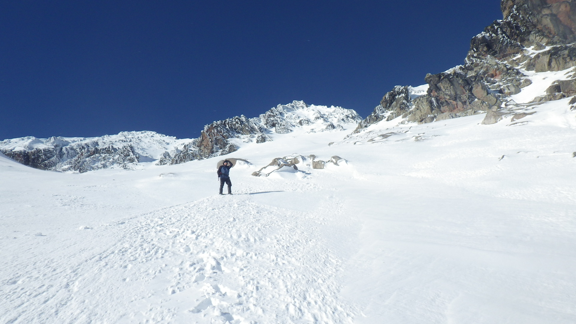 So the decision was made to pull the pin and go back to the hut. We had a leisurely climb/hike back to the hut enjoying if nothing else the mountains and the 2 colors of blue and white. Truly inspiring. below are some pictures and the home page picture is from the same trip.