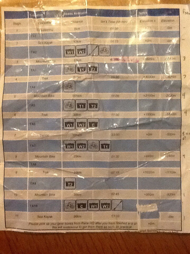 After receiving the maps we literally spent the rest of the morning pouring over maps and looking at route choices. We were in for a long race but one i was particularly excited about as i had successfully predicted generally about 1/3 to 1/2 of the race route, or at least places we would go, not necessarily how we would get there.
